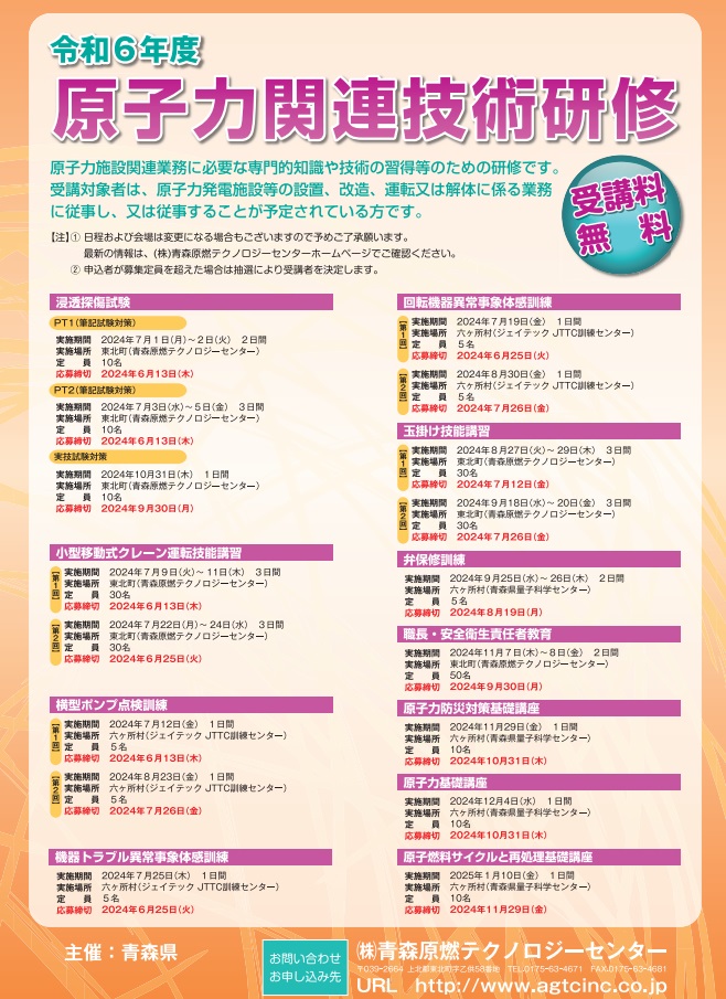 2025年度原子力関連研修一覧|青森原燃テクノロジーセンター